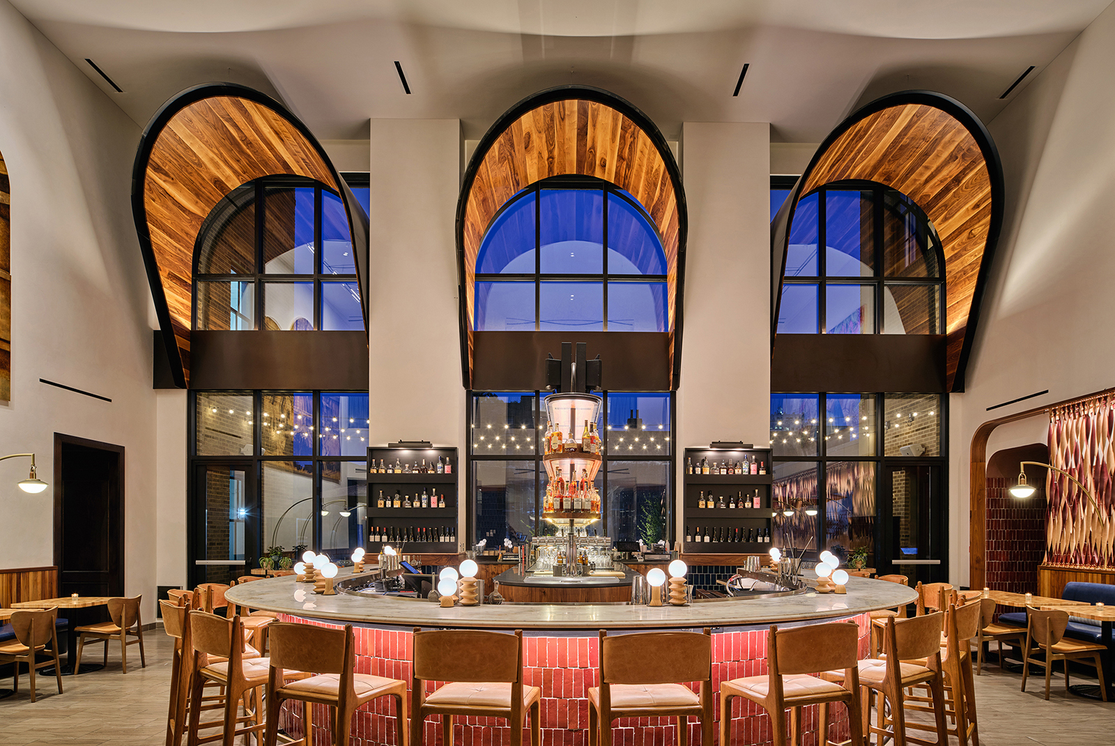 The 21c museum hotel is an innovative hospitality brand that blends art with hospitality. The project brief was to honor the history of the building while creating new spaces for the brand’s unique programming. Building on the idiosyncrasies of the YMCA model, the design team used a colorful and playful approach to create new spaces that merged with the old: spaces for sports were adapted to assembly areas, floors were removed to bring in light, guestrooms were flipped on end to work with the narrow footprint, a new Spanish-themed restaurant riffed on the original architectural style, and a multipurpose patio was built to the south to allow the hotel to spill out into the neighborhood. No two floors are the same and no two guestrooms are the same, making the building a truly unique experience.