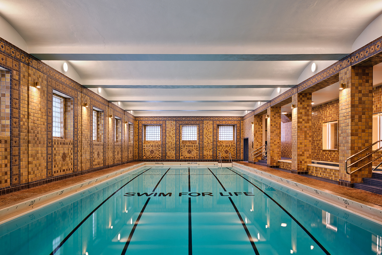The project demanded creative thinking from all members of the design team at all phases. The non-repetitive floor plates of the original design combined with the loose tolerances of the original concrete and masonry high-rise construction resulted in challenges in nearly every space. Fitting the program and building systems into the existing building shell required removal of several half-levels. The retention of the historic pool and public lobbies demanded creative new construction techniques partnered with the skill of traditional craftsman. Custom glazes were developed to match the original tile, plaster details were replicated, and original wood gym floors and basket weave tile flooring were meticulously restored. The team employed VDC technologies to make adjustments on the fly and make sure all the new building systems fit seamlessly in the historic shell.