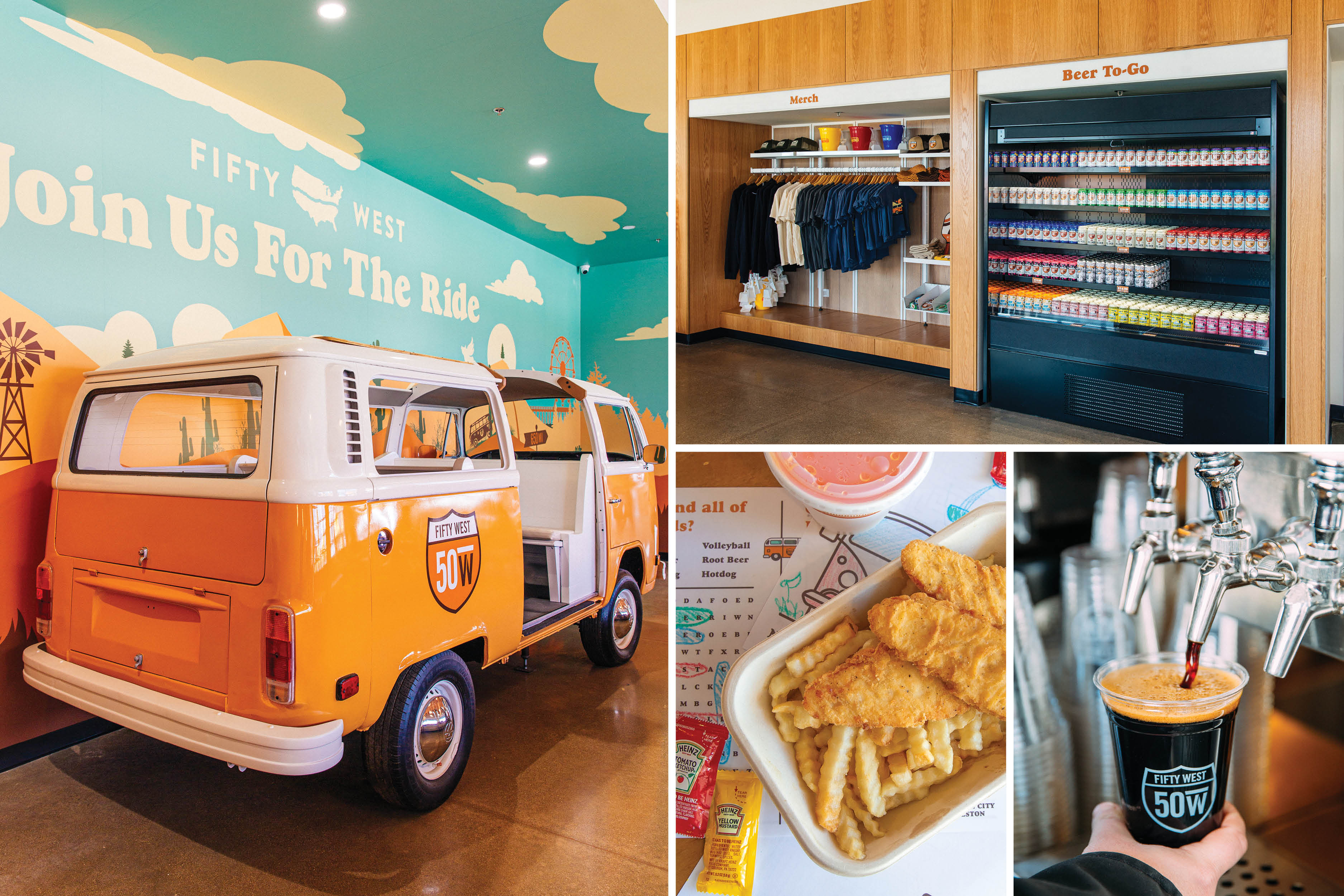 At the heart of Fifty West's concept is the idea of creating a third space—a welcoming environment where guests can relax, socialize, and linger. The architectural vision brings this to life with thoughtful design choices that instantly feel familiar. Picture walk-up order windows and a repurposed Volkswagen Bus transformed into a dining table, all evoking the nostalgia of a classic American rootbeer stand. These elements offer visual cues that make visitors feel right at home, while the layout focuses on inclusivity, catering to families with a kids' sand area integrated into the beer garden. Every detail is aimed at creating an inviting space that welcomes guests of all ages.