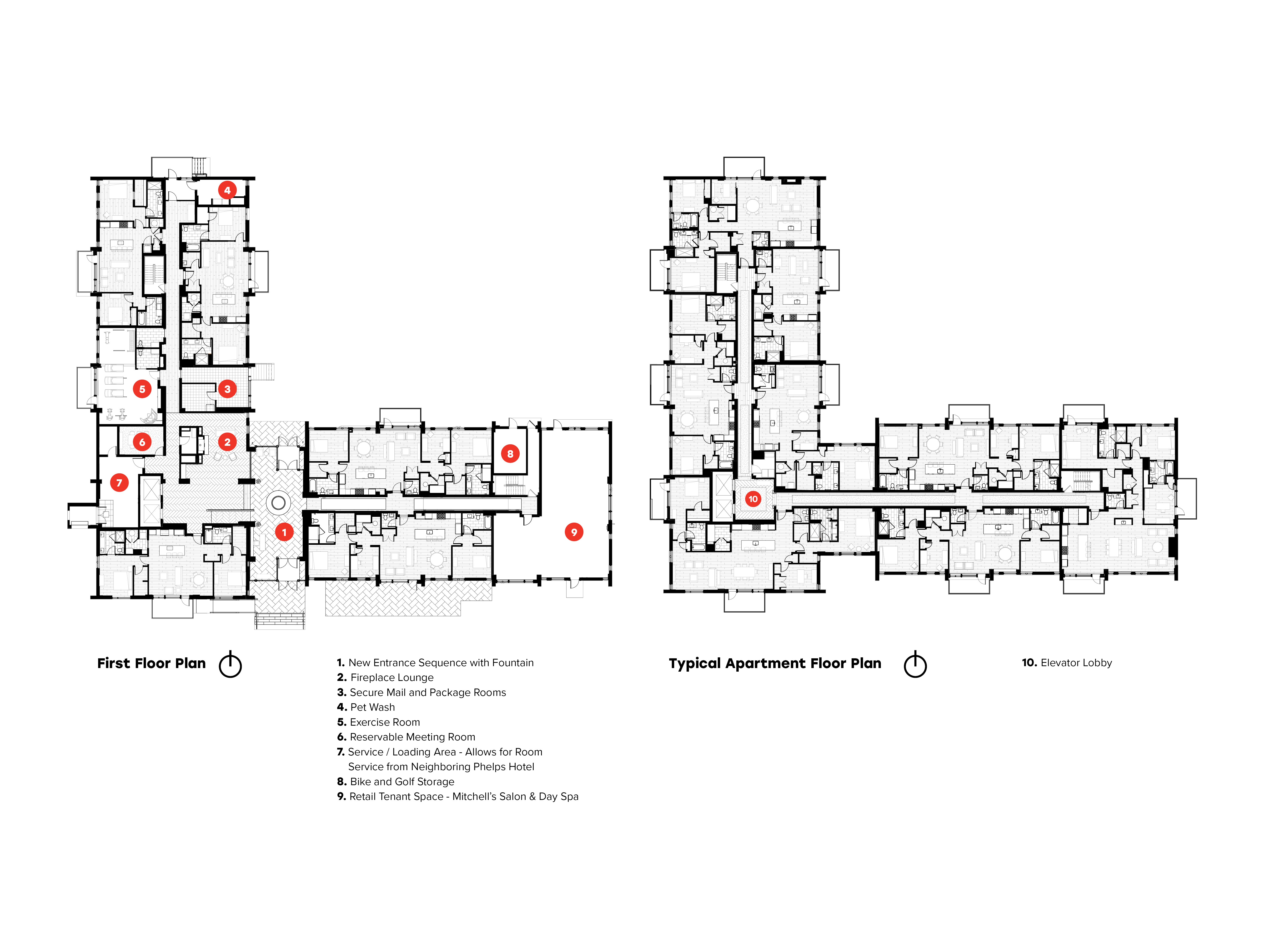 The building entrance—formerly a cold, dark and uninviting breezeway—has been transformed into an enclosed, welcoming, accessible lobby. Rich wood paneling, artful decorative metal screening, and a striking chandelier paired with a central fountain create an atmosphere of understated luxury. Every detail is carefully considered to evoke a sense of refined elegance from the moment one steps inside. The communal spaces invite a sophisticated lifestyle with a grand lobby, concierge services, and access to exclusive luxury amenities. Design inspirations from spaces like Tavern on the Green emphasize indoor-outdoor harmony and flow.
