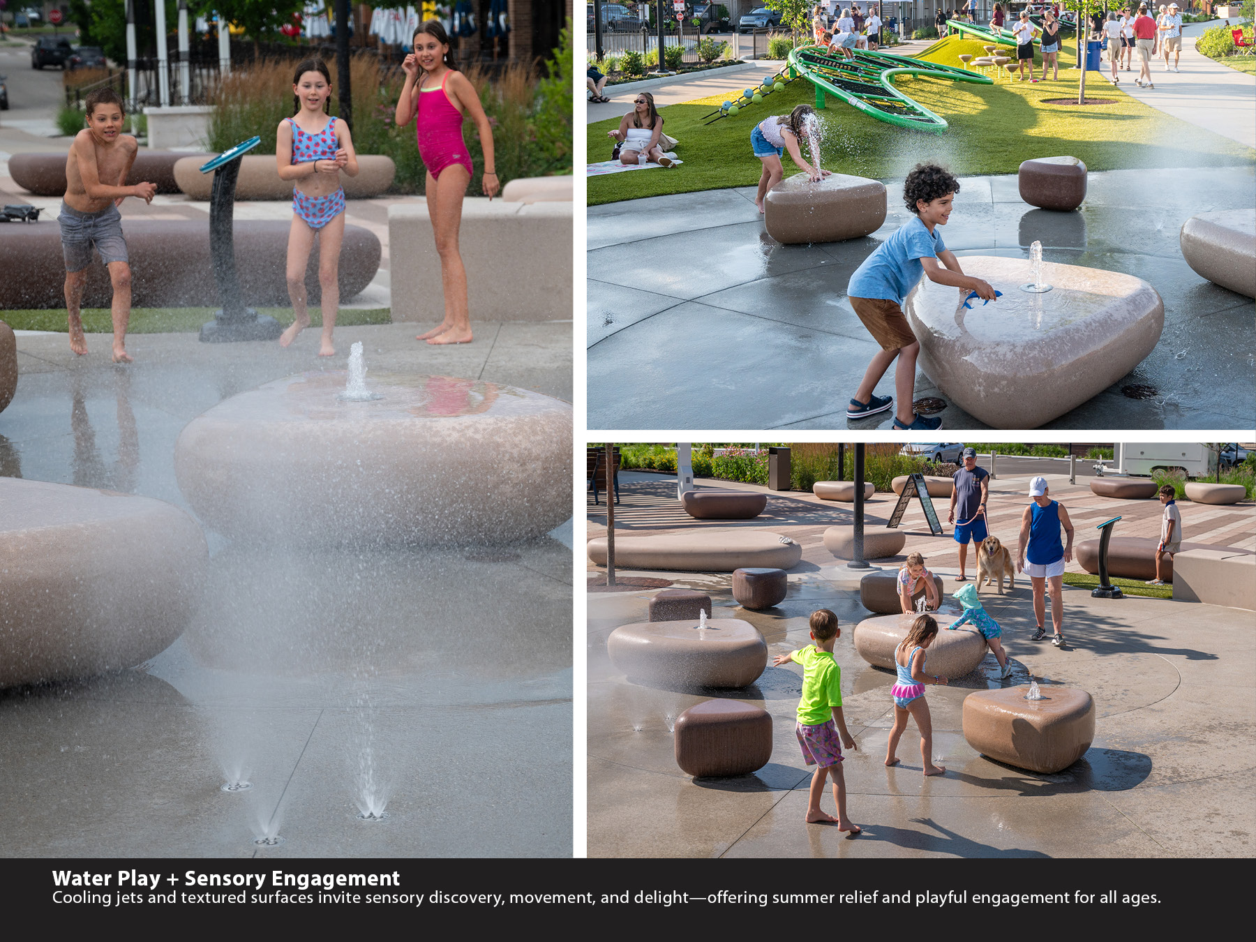 • Water Play elements invite sensory delight with textured surfaces and cooling jets—bringing summer relief and dynamic movement.