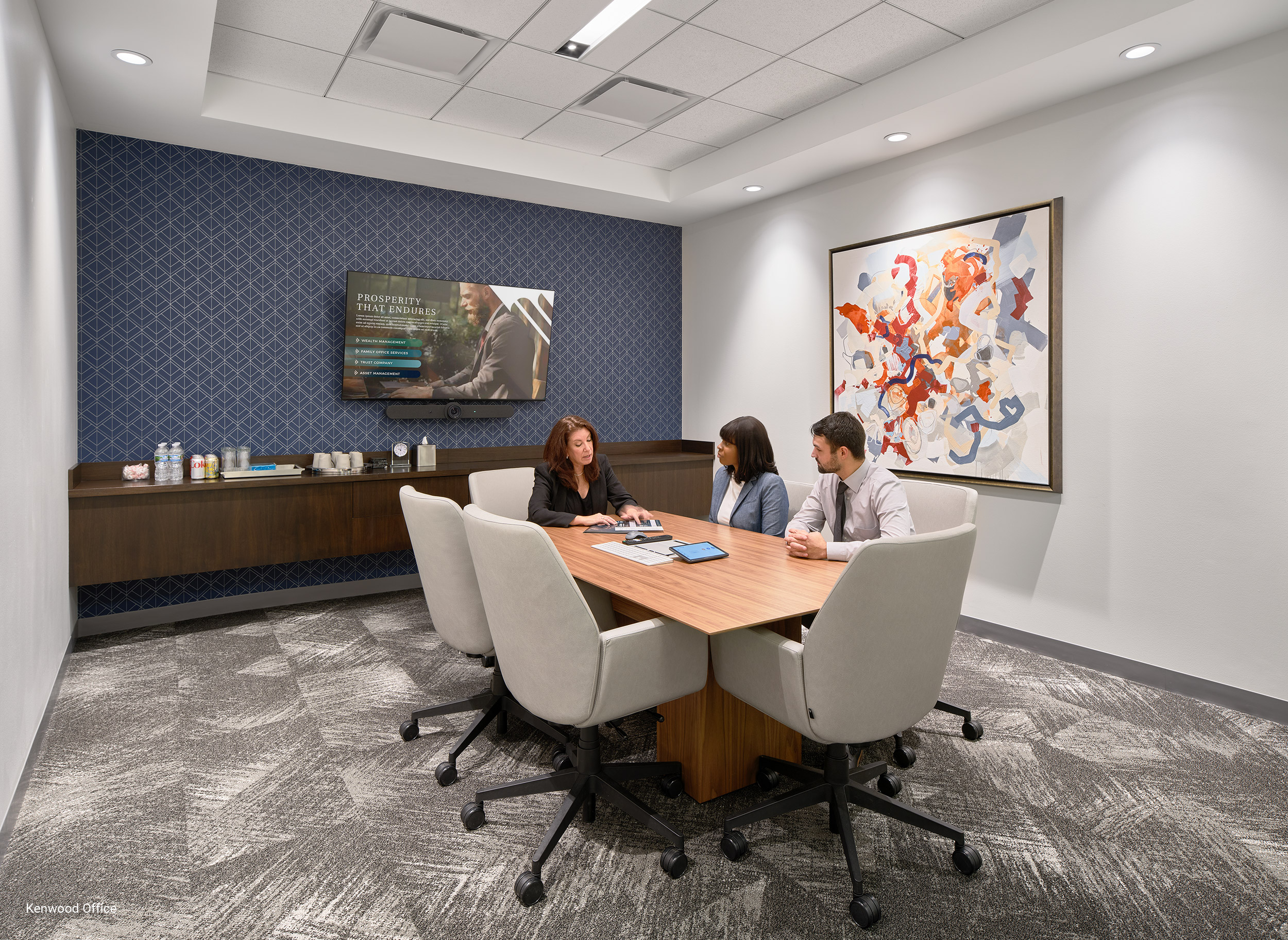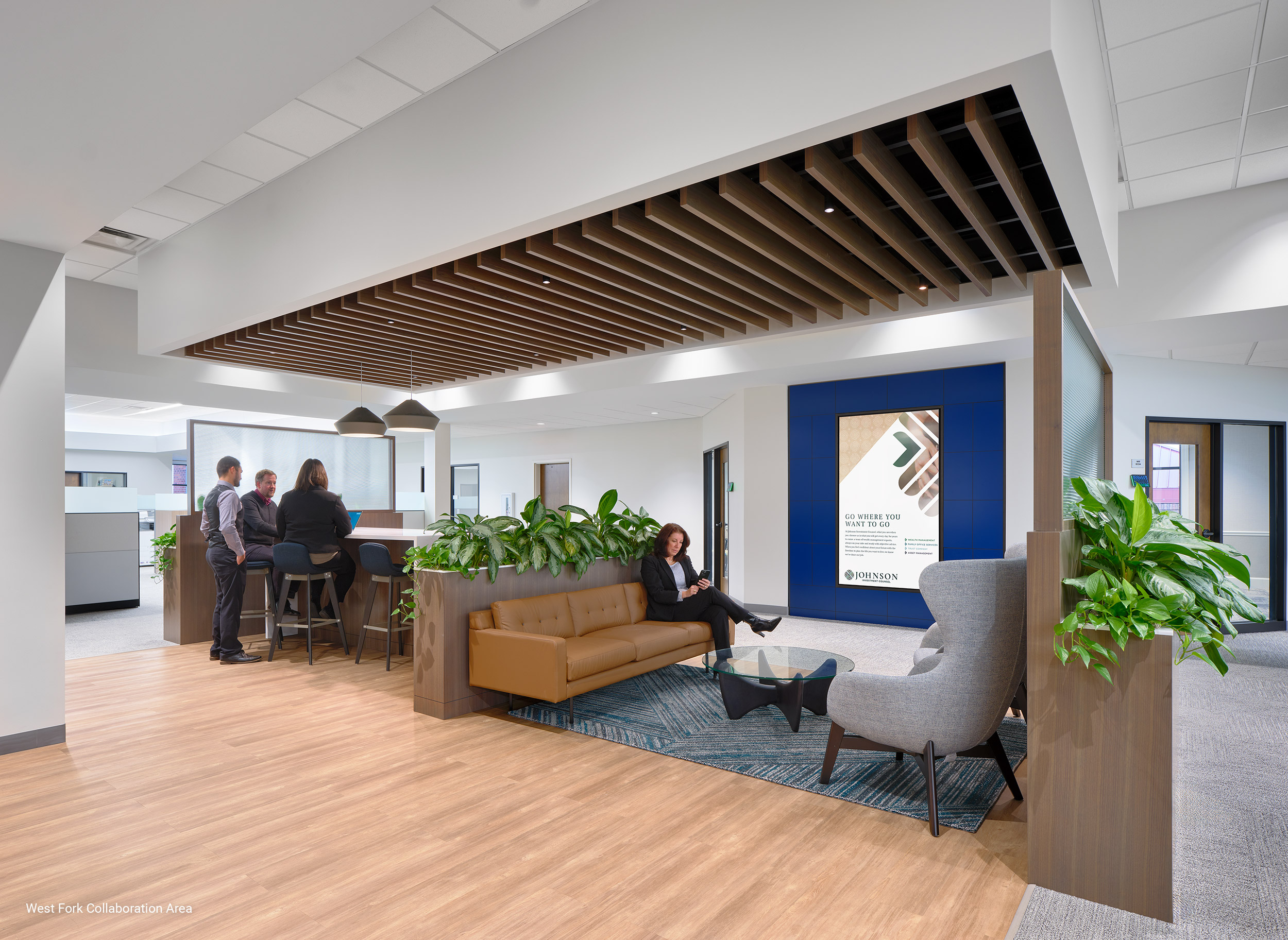 Johnson Investment Counsel, a leading Midwest wealth management firm with a 60-year legacy, sought to create a best-in-class workspace that reflects their values-driven approach and supports their strong culture. The project aimed to modernize their existing West Fork headquarters and expand their Kenwood office, creating environments that attract top talent, enhance client connections, and promote employee well-being. Based on insights from the employee engagement process, our team collaborated closely with Johnson to develop future-forward spaces that tell the company's story while offering diverse settings to meet the dynamic needs of the growing organization. While maintaining brand consistency, the design of each location used its unique architectural strengths, resulting in distinct yet cohesive aesthetics. The new employee-centered workspaces focus on enhancing engagement and productivity through thoughtful design. They provide branded experiences for both visitors and staff, reflecting the company's heritage while fostering innovation and collaboration. The redesigned offices feature areas for socializing, learning and celebrating, strengthening connections across multiple locations and boosting employee retention. By prioritizing employee experience and well-being, Johnson Investment Counsel has created environments that not only support their current workforce but also position the company to attract and retain the next generation of leaders in the competitive financial services industry.