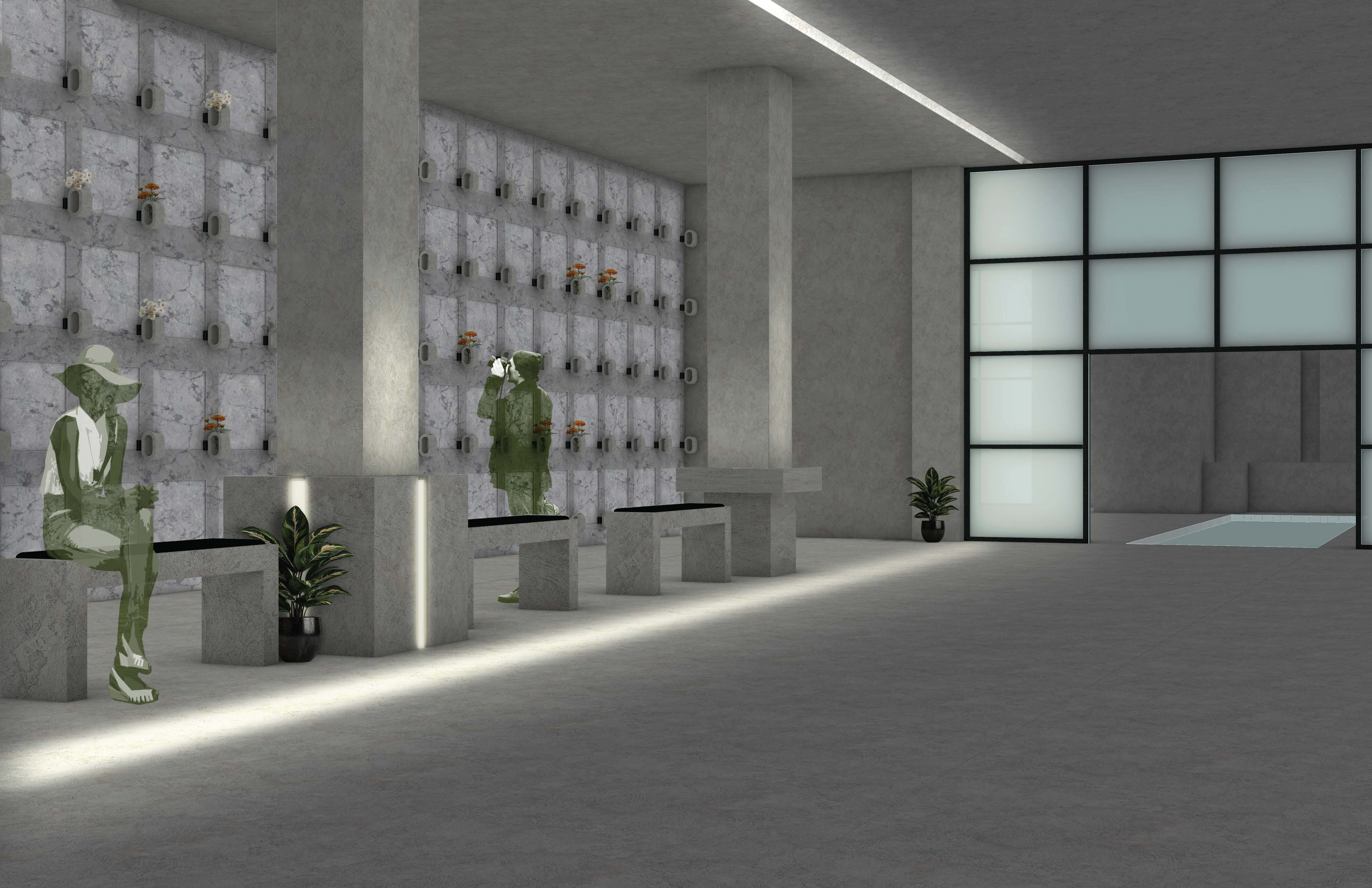 The focus of this project is to transform an abandoned underground subway space into a serene mausoleum, re-imagining a forgotten void into a meaningful destination rooted in the everyday reality of life and loss. Contrasting elements such as raw industrial remnants of the subway with refined, calming material, emphasize the balance between past and present, decay and renewal. The result is a peaceful sanctuary where visitors can grieve and remember their loved ones in a space that honors both memory and transformation.