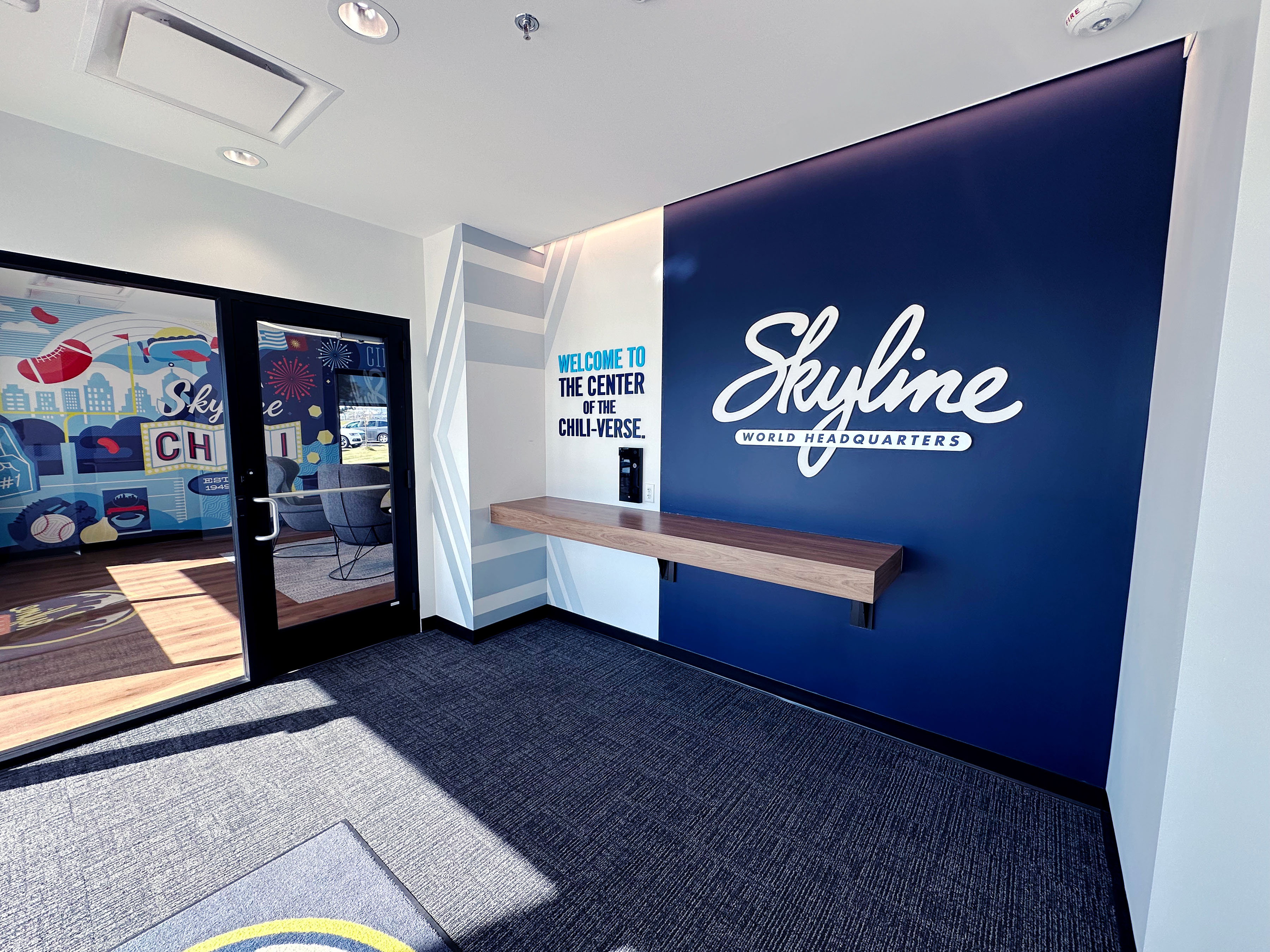The result is a headquarters that functions as more than a workplace. Employees are surrounded by brand pride, visitors are invited to connect and engage, and franchisees see themselves celebrated as vital to Skyline’s success. Through murals, recognition features, and interactive storytelling, the headquarters captures the essence of Skyline Chili—timeless in tradition, dynamic in innovation, and deeply rooted in community.
