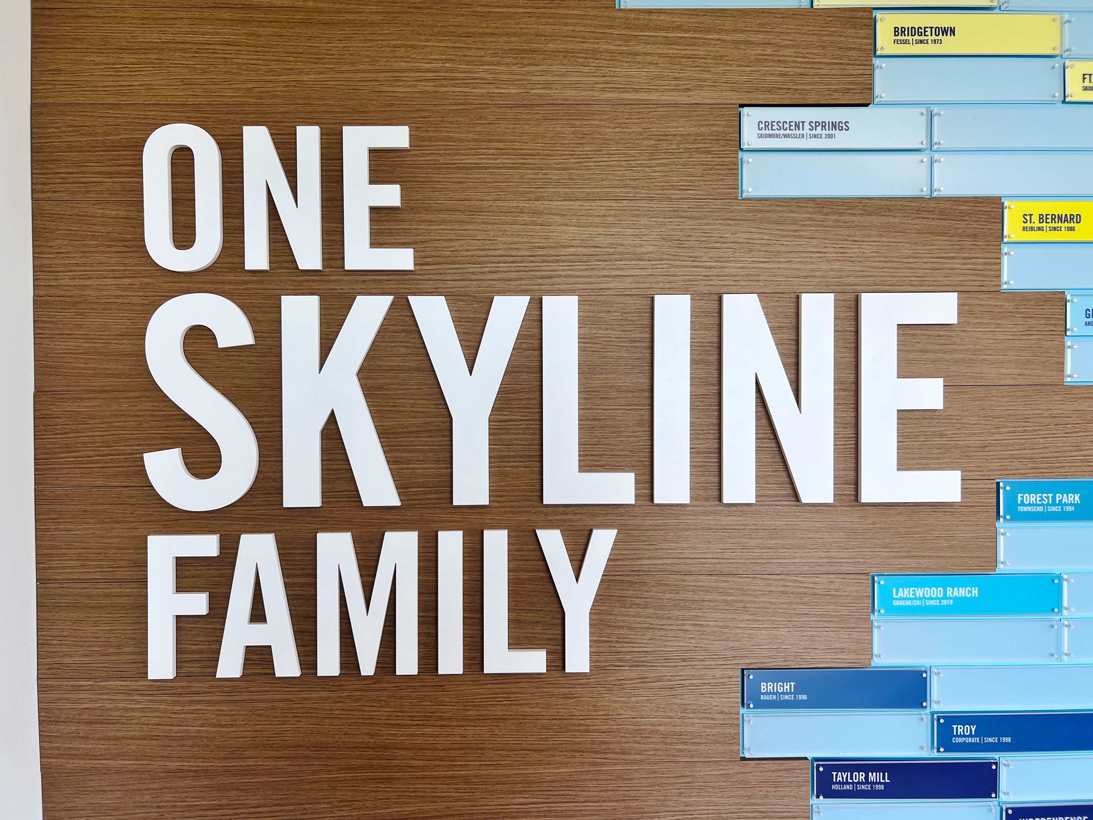 Finally, the “Feeling Good, It’s Skyline Time” wall anchors the headquarters with a vibrant collage of fan photos and cultural touchpoints, framed in Skyline’s signature yellow. The display blends history, pride, and community celebration, reminding everyone of the joy the brand inspires.