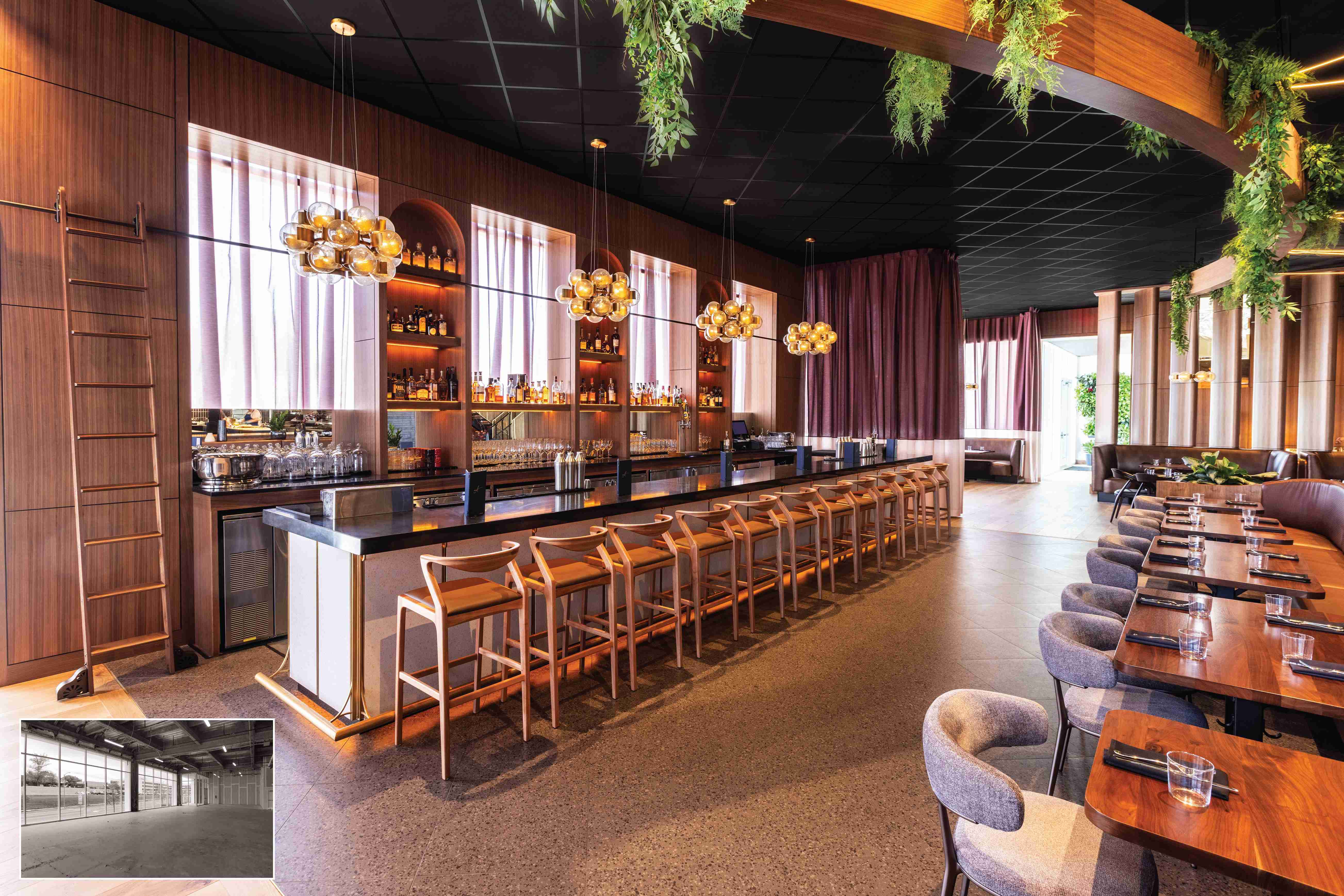 A jalousie partition allows for a quick glimpse before the scene comes into full focus. The atmosphere is incandescent, brass details glistening against walnut paneling and rich leather upholstery. Diners become part of the jazz composition that is the space. The menu is a revelry of shared plates. Servers visit tables in staccato beats as dishes are prepared, plates lilting across the aisles in a kind of flight.