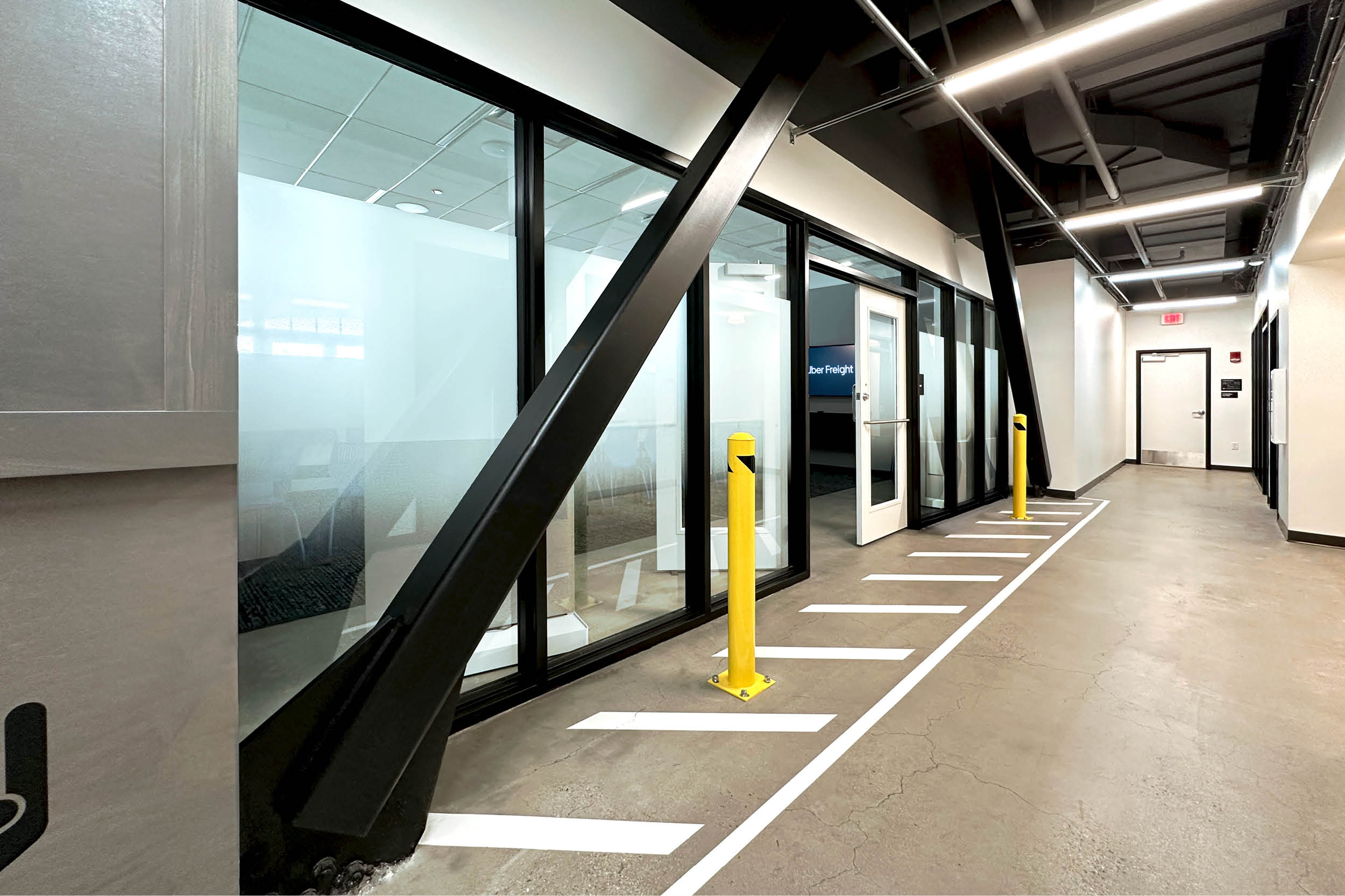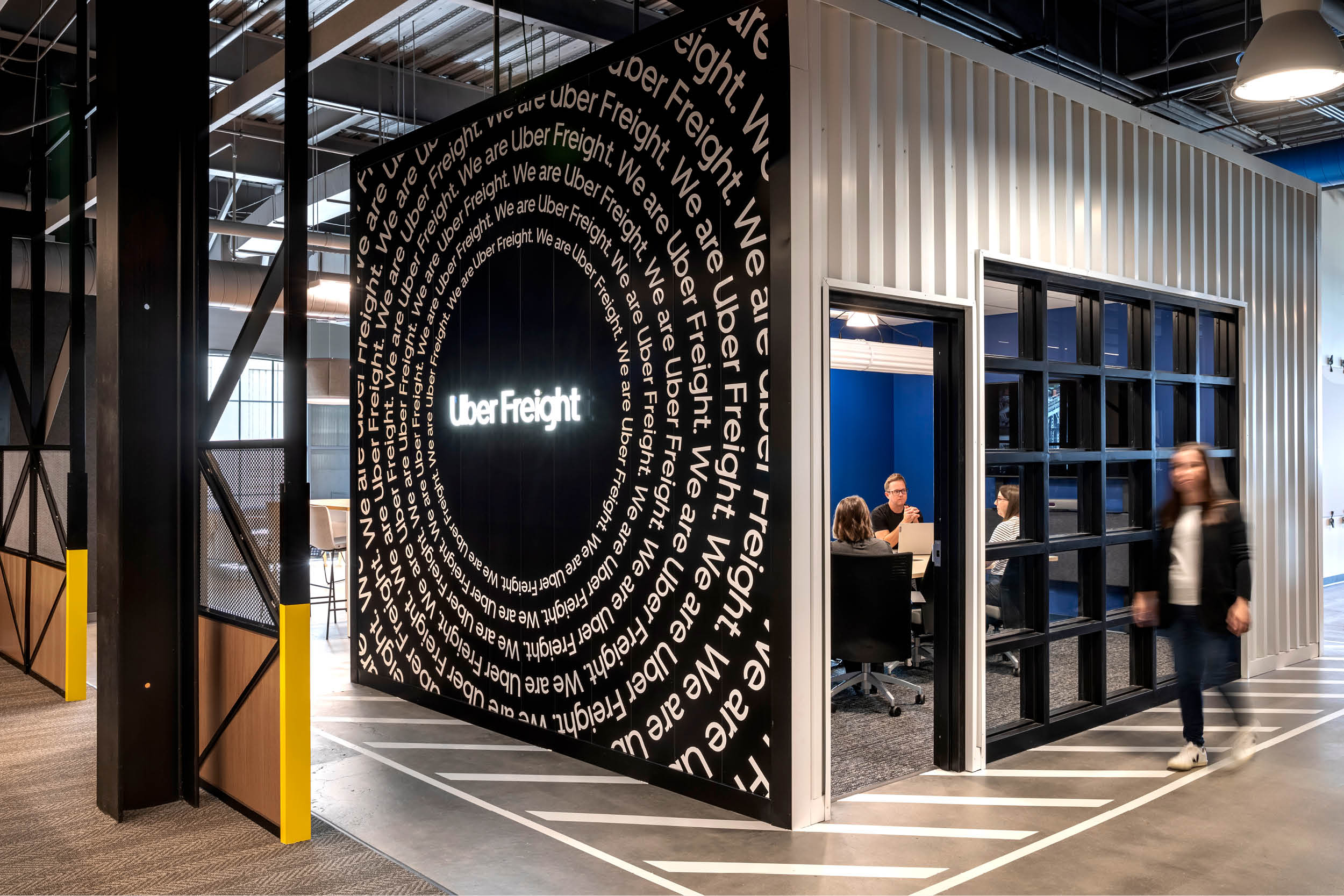 Uber Freight’s Newport office is more than a workplace—it is a physical embodiment of the brand’s story. As a logistics platform redefining managed transportation, Uber Freight sought a space that could communicate its ethos of movement, connection, and innovation while supporting the realities of a post-COVID hybrid workforce. The resulting environment transforms brand values into spatial experience, creating a place where employees, clients, and partners encounter Uber Freight’s identity at every turn.